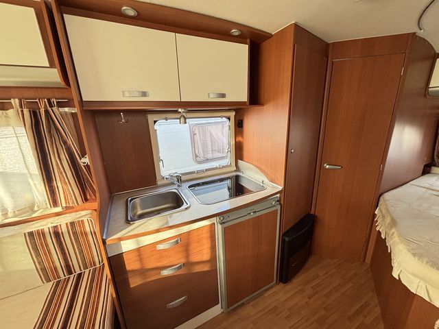 - Franciaágyas hálófülkével és körüléssel, mely szintén ággyá alakítható, így 4 fő részére nyújt kényelmes fekhelyet! Tágas zuhanyfülkével, beépített kazettás wc-vel, beépített víztartállyal és melegvízrendszerrel felszerelve! Komplett konyhával: hűtőszekrény, mosogató, gáztűzhely, mikrohullámú sütő! Gázfűtéssel és tetőklímával felszerelve, így egész évben komfortosan használható! Az ablakokon kombirolókkal felszerelve! A franciaágy ágyneműtartója kívülről is kényelmesen pakolható a szervízajtón keresztül! A vontatást stabilizátoros vonófej, a helyszíni mozgatást pedig mover -lakókocsi mozgató rendszer- segíti! Caravanstore előtetővel! A lakókocsit teljesen útra készen adjuk át! Az ár tartalmazza a névre írás költségét is!