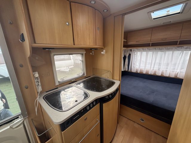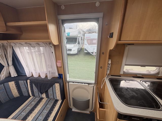 Franciágyas hálófülkével és körüléssel, mely szintén ággyá alakítható, így 4 fő részére nyújt kényelmes fekhelyet! Komplett konyhával: hűtőszekrény, mosogató, gáztűzhely. Zuhanyfülkével, beépített kazettás wc-vel, beépített víztartállyal és melegvízrendszerrel felszerelve! Az ablakokon és a panoráma tetőablakokon kombirolókkal, az ajtón szúnyoghálóval felszerelve! Az ágyneműtartók kívülről is kényelmesen pakolhatóak a szervízajtókon keresztül! Omnistor előtetővel. A vontatást stabilizátoros vonófej segíti! A kétkerekűek kényelmesen szállíthatóak a vonóháromszögre szerelt kerékpártartón! A lakókocsit teljesen útra készen adjuk át! Az ár tartalmazza a névre írás költségét is!