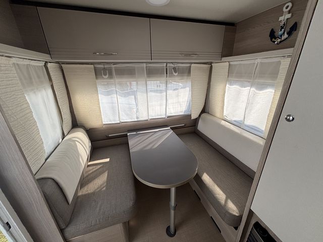 Újszerű lakókocsi sok extrával felszerelve! Franciaágyas hálófülkével és étkezővel, mely szintén ággyá alakítható, így 4 fő részére nyújt kényelmes fekhelyet! Mosdófülkével, beépített kazettás wc-vel, beépített víztartállyal és melegvízrendszerrel felszerelve! Komplett konyhával: hűtőszekrény, mosogató, gáztűzhely! Az ablakokon és a panoráma tetőablakon kombirolókkal, az ajtón szún yoghálóval felszerelve! Gázfűtéssel, elektromos fűtéssel -Ultraheat-, valamint Fiamma Turbo Vent ventillátoros tetőablakkal, így egész évben komfortosan használható! A franciaágy ágyneműtartója kívülről is kényelmesen pakolható a szervízajtón keresztül! Az értékek biztonságban elhelyezhetőek a beépített széfben. Előtetővel, mely alatt komfortosan berendezkedhetünk a kempingben, hiszen külső 230/12V-os aljzat, valamint külső gázcsatlakozó és TV antenna csatlakozó is kiépítésre került! A lakókocsi vontatását stabilizátoros vonófej, valamint ATC menetstabilizátor segíti, a helyszíni mozgatásban pedig mover -lakókocsi mozgató rendszer- van segítségünkre! A lakókocsit teljesen útra készen adjuk át! Az ár tartalmazza a friss műszaki vizsga és a névre írás költségét is!