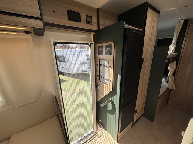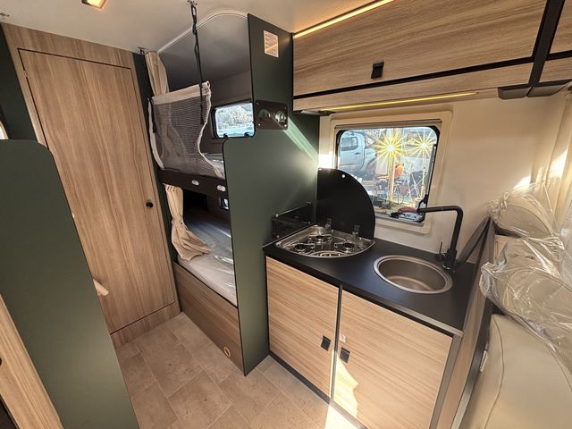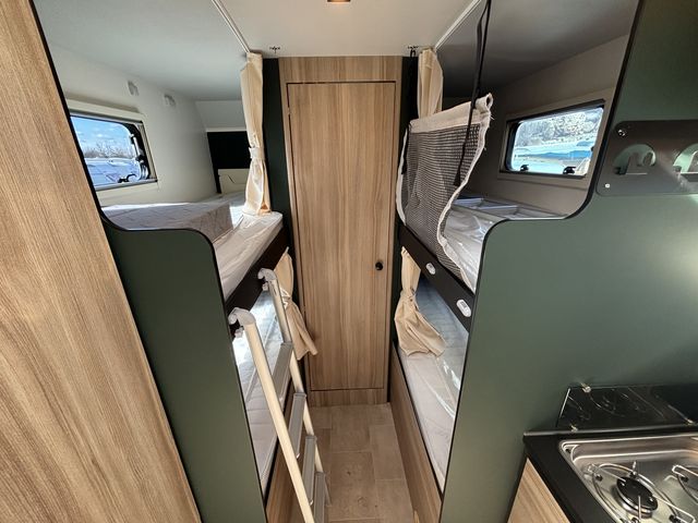 Vadonatúj családi lakóautó teljes értékű dupla emeletesággyal (78x200cm) és franciaággyal (140x220) az alkovban, így hat fix fekhellyel rendelkezik! Nagy méretű körüléssel, komplett konyhával: torony hűtőszekrény (141L) mosogató, gáztűzhely! Zuhanyfülkével, beépített kazettás wc-vel, beépített víztartállyal ( 20+65L), valamint szennyvíztartállyal (70L) felszerelve! A melegvízet és a fűtést Combi C4 gázkazán biztosítja. Az alsó emeleteságyak felhajtásával garázsok alakíthatóak ki, melyek a nagy méretű ( 95x135cm, illetve 95x115cm) szervízajtókon keresztül pakolhatóak kívülről! Az ablakokon és a panoráma tetőablakokon kombirolókkal, az ajtón szúnyoghálóval, a vezetőfülke ablakain sötétítőrolókkal felszerelve! Thule előtetővel, valamint hátfalra szerelt kerékpártartóval felszerelve! Jól felszerelt utasfülke szolgálja az utazás közbeni kényelmest. 8 sebességes automata váltó, fedélzeti computer, nagy LCD kijelző, bluetooth-os kihangosító, carplay, tempomat, digitális klíma, tolatókamera. A Fordpass alkalmazással nyomon követhetőek az autó technikai adatai, valamint aktuális műszaki állapota és földrajzi helyzete. A lakóautót teljesen útra készen adjuk át! Az ár tartalmazza a forgalomba helyezés és a névre írás költségét is!