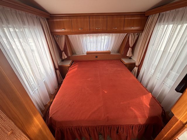 Extra tágas full extrás lakókocsi franciaágyas hálófülkével és körüléssel, mely szintén ággyá alakítható, így 4 fő részére nyújt kényelmes fekhelyet! Zuhanyfülkével, beépített kazettás wc-vel és melegvízrendszerrel! Komplett konyhával: hűtőszekrény, mosogató, gáztűzhely, gázsütő! Az ablakokon és a panoráma tetőablakon kombirolókkal, az ajtón szúnyoghálóval felszerelve! Tetőklímával és gázfűtéssel, így egész évben komfortosan használható! A kétkerekűek kényelmesen szállíthatóak a vonóháromszögre szerelt kerékpártartón! A vontatást stabilizátoros vonófej, a helyszíni mozgatást mover -lakókocsi mozgató rendszer- segíti! A lakókocsit teljesen útra késze adjuk át! At ár tartalmazza a friss műszaki vizsga és a névre írás költségét is!