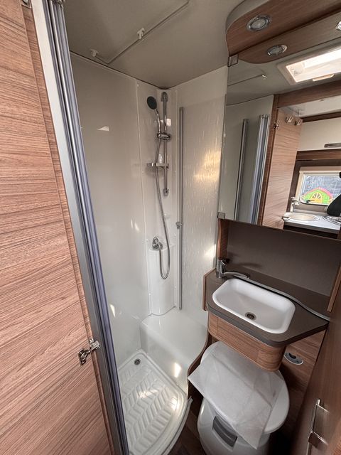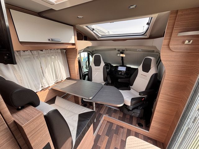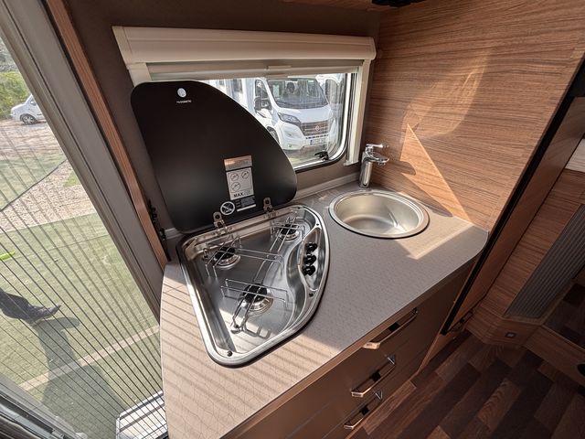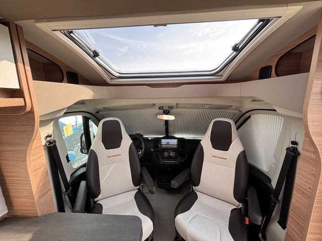 Gyönyörű, újszerű lakóautó, melynek hálófülkéje használható 2 heverőként, vagy kialakítható belőle egy franciaágy! Komplett konyhával: mosogató, gáztűzhely, torony hűtőszekrény. Zuhanyfülkével, beépített kazettás wc-vel és beépített víztartállyal! A fűtést és a meleg vizet combi kazán biztosítja, a nyári hűvösről pedig tetőklíma gondoskodik! Forgatható utasülésekkel 4 fő részére kényelmes étkező alakítható ki! Az ablakokon és a panoráma tetőablakokon kombirolókkal, az ajtón szúnyoghálóval, az utasfülke ablakain pedig sötétítőrolókkal felszerelve! A kétkerekűek kényelmesen szállíthatóak a nagy méretű garázsban található kerékpártartón! A kényelmes ki és bepakolásról szervízajtó gondoskodik. Előtetővel és fellépő lépcsővel felszerelve! Az utasfülke kényelmét manuális klíma,központi fejegység (AM/FM rádió, GPS navigációs rendszer, tolatókamera) multifunkciós kormánykerék, USB aljzat, kartámaszok és tempomat biztosítja. Könnyűfémfelnikkel. A lakóautót teljesen útra készen adjuk át! Az ár tartalmazza a névre írás költségét is!