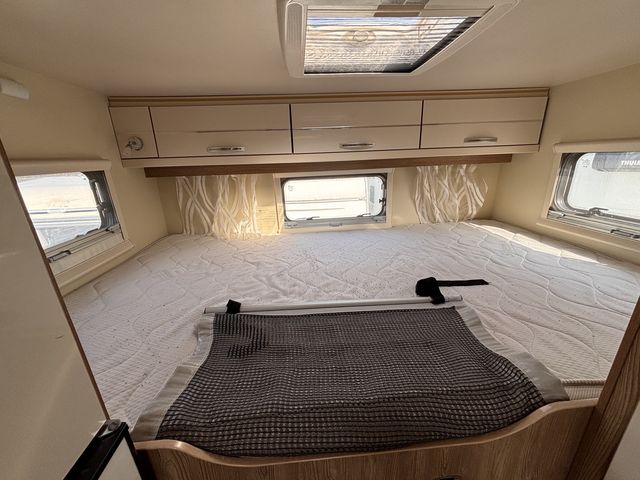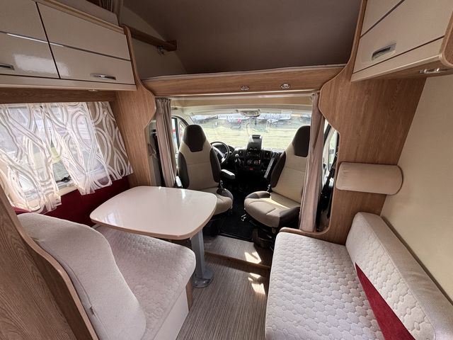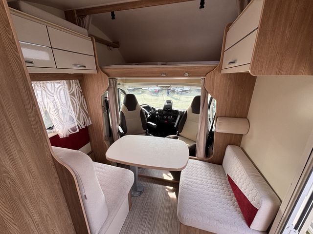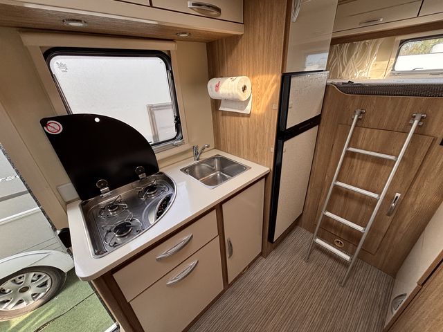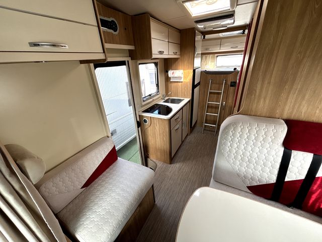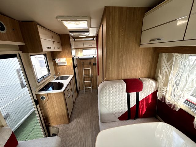 Tágas, világos lakóautó 2 franciaággyal, valamint egy ágyazható ülőgarnitúrával, így 5 fő részére kényelmes fekhelyet nyújt! Nagy méretű garázzsal, mely a szervízajtón keresztül könnyedén pakolható! Komplett konyhával: hűtőszekrény, mosogató, gáztűzhelyű! Az ablakokon és a panoráma tetőablakon is kombirolókkal, az ajtón pedig szúnyoghálóval felszerelve! Tágas fürdőszobával, melyben helyett kapott a zuhanykabin, a mosdó és egy beépített wc is! A fűtést és a meleg vizet combi kazán biztosítja, a nyári hűs levegőről pedig tetőklíma gondoskodik! A kétkerekűek kényelmesen szállíthatók a hátfalra szerelt kerékpártartón! Az autót teljesen útra készen adjuk át! Az ár tartalmazza a névre írás költségét is!